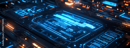 © Manuel, Obraz premium Futuristic AI System Interface with Neon Schematics