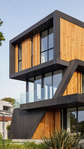 Obraz premium Futuristic and abstract contemporary architectural house exterior featuring...