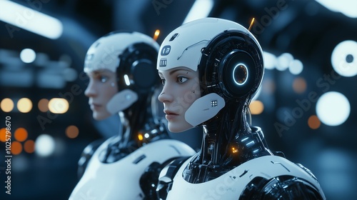 © Kobkaew, Fototapeta premium Futuristic android robot in action wearing a helmet, embodying advanced technology