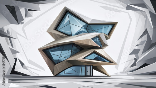 Obraz premium Futuristic, angular building in a white, abstract space.
