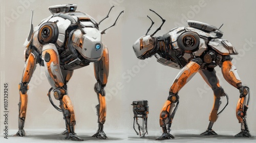 Fototapeta premium Futuristic animal robots designed for exploration, featuring advanced AI and bio-inspired mechanics.