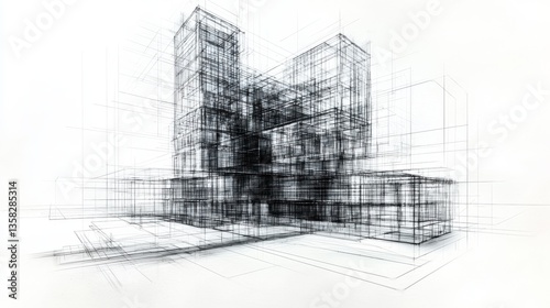 © Sarut, Naklejka premium Futuristic Architectural Design Blueprint Innovative Urban Development Concept with Geometric Glass and Steel Structures Showcasing a Minimalist