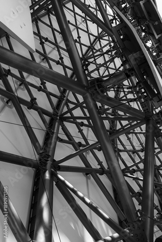 © blackday, Fototapeta premium Futuristic Architectural Facade with Metallic Structure