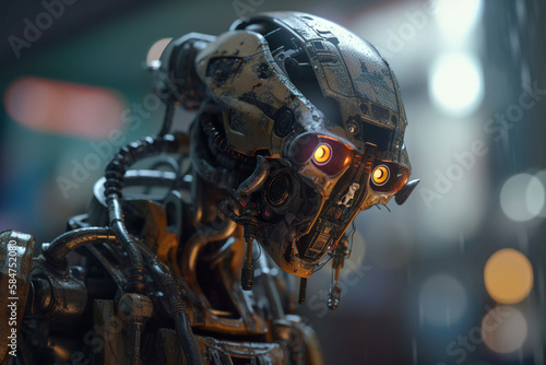 Fototapeta premium futuristic artificial intelligence robot soldier warrior with glowing eyes,...