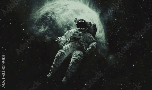 © Mahmud, Fototapeta premium Futuristic Astronaut Standing on a Glowing Earth with Starry Galaxy Background
