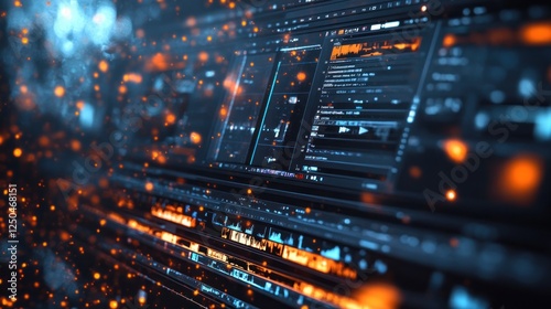 © @_ greta, Obraz premium Futuristic Audio and Video Editing Interface with Abstract Particle Effects