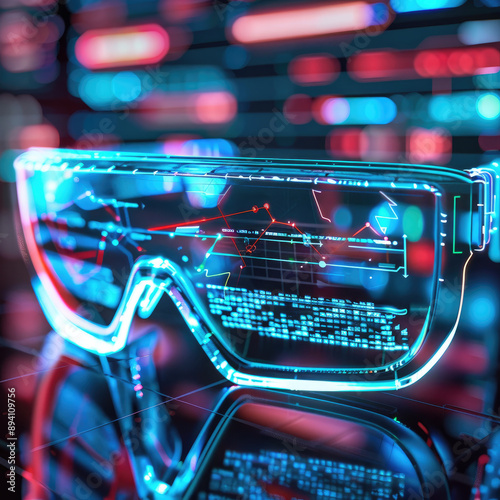 Obraz premium Futuristic Augmented Reality Glasses with Digital Interface in Neon Lights
