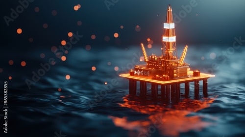 Fototapeta premium Futuristic Augmented Reality Oil Drilling Interface in Dark Offshore Setting...