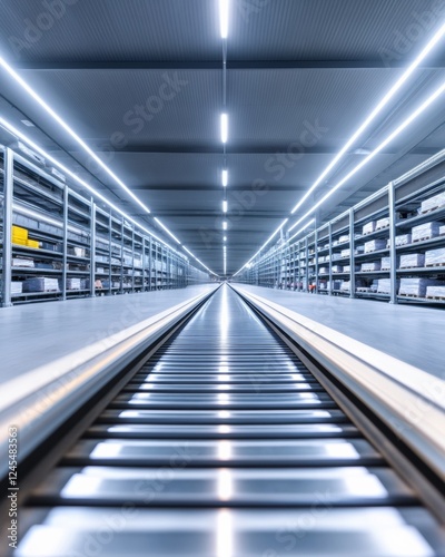 Fototapeta premium Futuristic Automated Fulfillment Center Aesthetic Sleek Steel Shelving and...