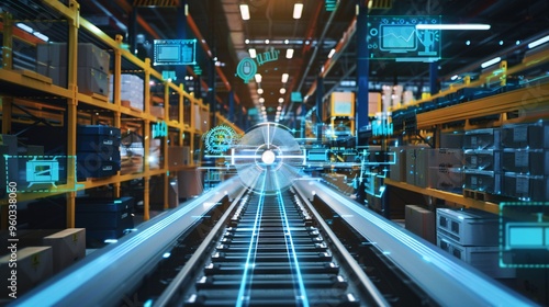 Fototapeta premium Futuristic Automated Warehouse with Smart Technology and Conveyor Belts