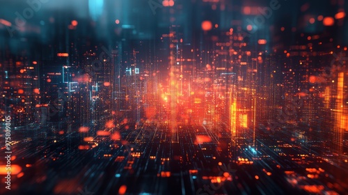 © muhammad, Obraz premium Futuristic background of points with a dynamic wave