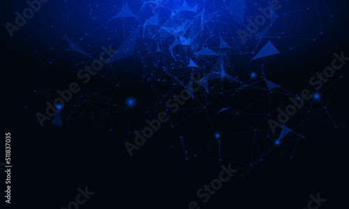 © Pakpoom, Obraz premium Futuristic background of polygon geometric shape connection. Big data technology visualization concept background.