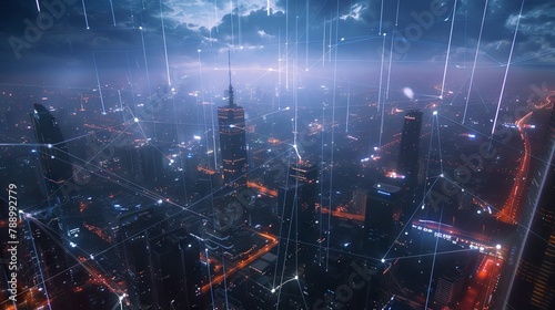 © Ameer, Fototapeta premium Futuristic Bangkok skyline: illuminated cityscape embracing advanced connectivity and smart urban networking