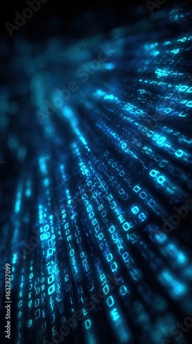 Obraz premium Futuristic Binary Code Stream in Blue Tones, Abstract Data Flow...