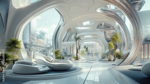Fototapeta premium Futuristic Biophilic Interior Design: A Glimpse into Tomorrow's Architecture