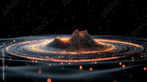© Oat_Photo, Obraz premium Futuristic Blockchain Network Abstract Data Mountain in Space