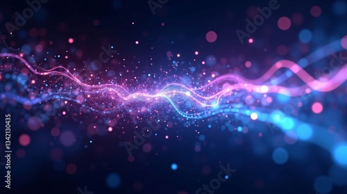 © Your Stock Studio, Fototapeta premium Futuristic Blue and Red digital Abstract Waving Particle Technology Background Design.