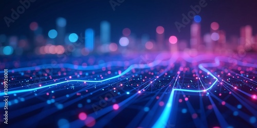 © Your Stock Studio, Obraz premium Futuristic Blue and Red digital binary data on computer screen Abstract Waving Particle Technology Background Design.