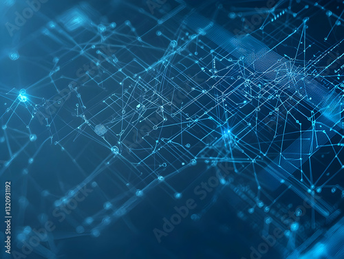 © Zeenat, Obraz premium Futuristic blue background with complex tech lines and nodes, highlighting abstract technology and big data themes.