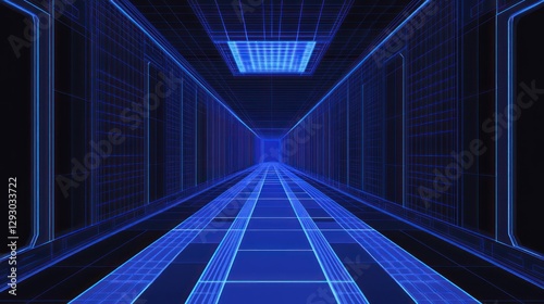 Fototapeta premium Futuristic blue corridor; digital art; background grid; sci-fi concept