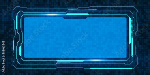 Obraz premium Futuristic blue cyber data frame on a digital grid, abstract technology...