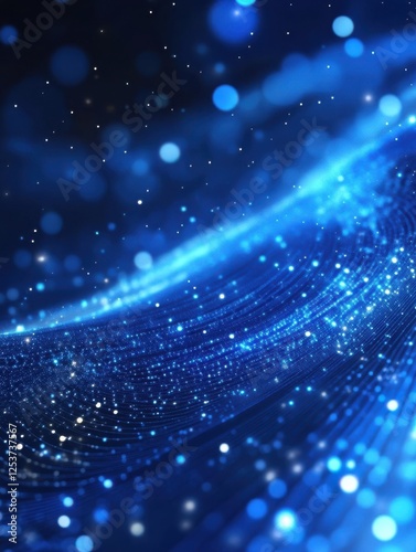 © Business Pics, Obraz premium Futuristic blue dots waves for digital processing, network connection and digital communication concept background.