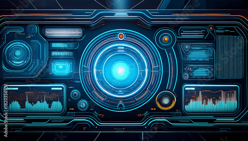 Obraz premium Futuristic Blue HUD Interface Panel with Digital Controls and Data Display