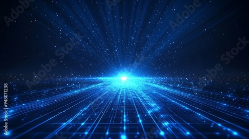 Fototapeta premium Futuristic blue light burst with digital grid lines, abstract technology...
