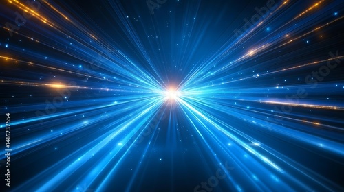© NCSF, Fototapeta premium Futuristic Blue Light Trails on Digital Highway