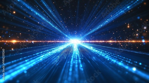 © NCSF, Fototapeta premium Futuristic Blue Light Trails on Digital Highway