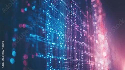 © Smart AI, Fototapeta premium Futuristic Blue Line with Glowing Technology Background and Digital Elements