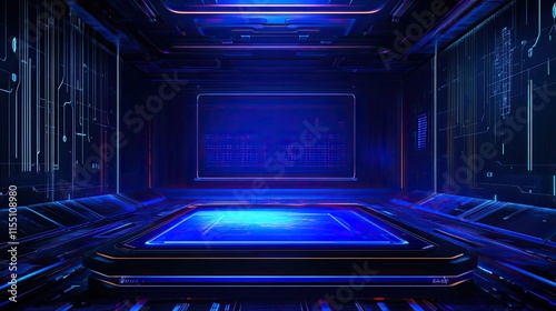 Obraz premium Futuristic Blue Lit Room Digital Interface Design
