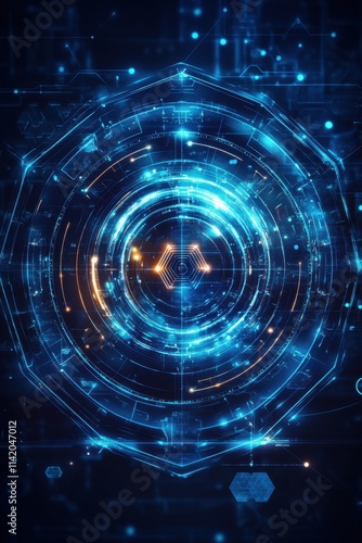 Obraz premium Futuristic blue technology abstract with intricate circular patterns and...