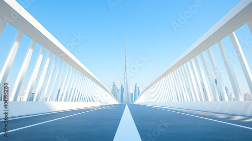 Fototapeta premium Futuristic Bridge with City Skyline in Background