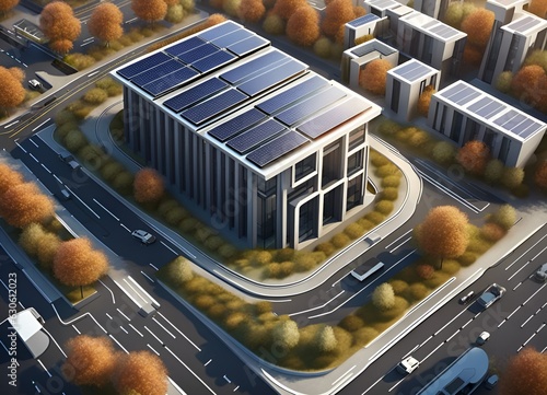 © Sagar, Obraz premium Futuristic building construction with solar panels generated ai