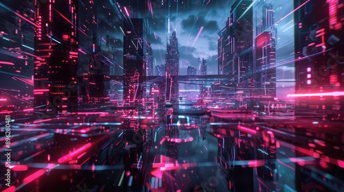 © Tunsale, Obraz premium Futuristic business background. Ai generation.