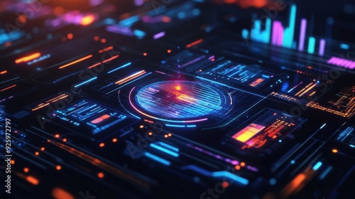Obraz premium Futuristic Business Intelligence Analysis with Holographic Data in 3D...