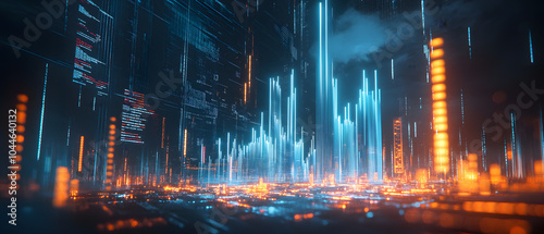Fototapeta premium Futuristic Business & Stock Investment Visuals: High-Tech, Neon-Lit Financial...