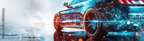 © Dalibor, Fototapeta premium Futuristic car design showcasing internal mechanical parts in motion. Free copy space for banner.