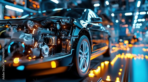 Fototapeta premium Futuristic Car Engine in High-Tech Environment