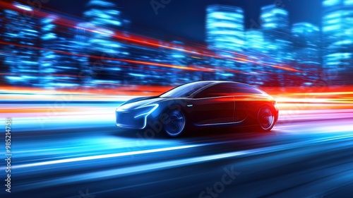 Obraz premium Futuristic Car Speeding Through Cityscape