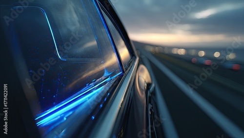 © fauzi, Fototapeta premium Futuristic car window at sunset