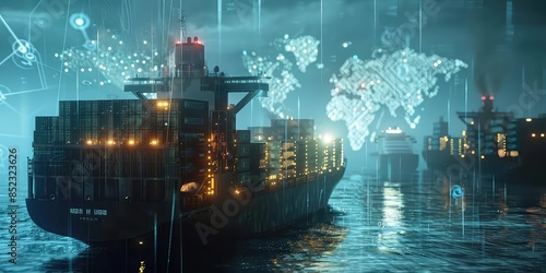 Obraz premium Futuristic cargo container ships utilize technology for global logistics
