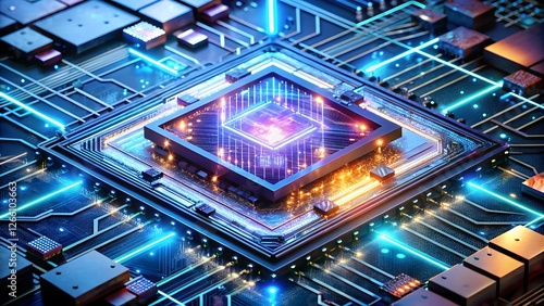 Obraz premium Futuristic Central Processing Unit (CPU) with Glowing Circuits
