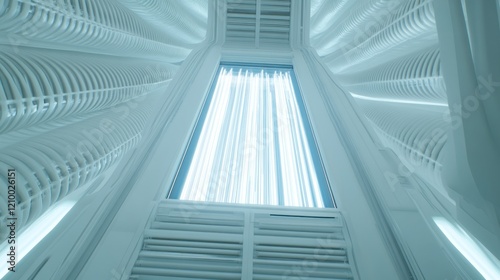 Obraz premium Futuristic chamber; glowing; vertical; white; technology; interior; science;...