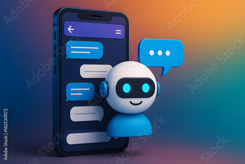 © Tofayel, Fototapeta premium Futuristic Chatbot Interface on Smartphone with Glowing Message Bubbles. 3D render