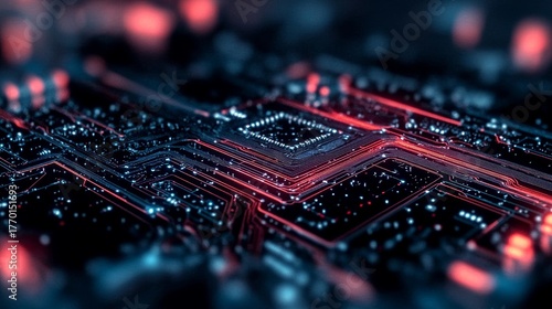 © Ilja, Fototapeta premium Futuristic Circuit Board Design Featuring Quantum Processor and Technology Innovation