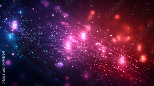 Fototapeta premium Futuristic circuit board illustration with vibrant digital code.