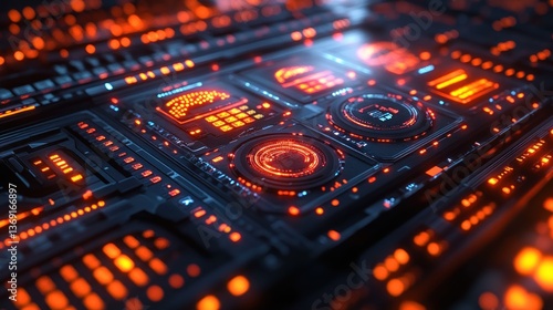 Obraz premium Futuristic circuit board interface with glowing displays
