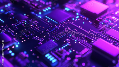 Obraz premium Futuristic circuit board, technology, cyber security, glowing